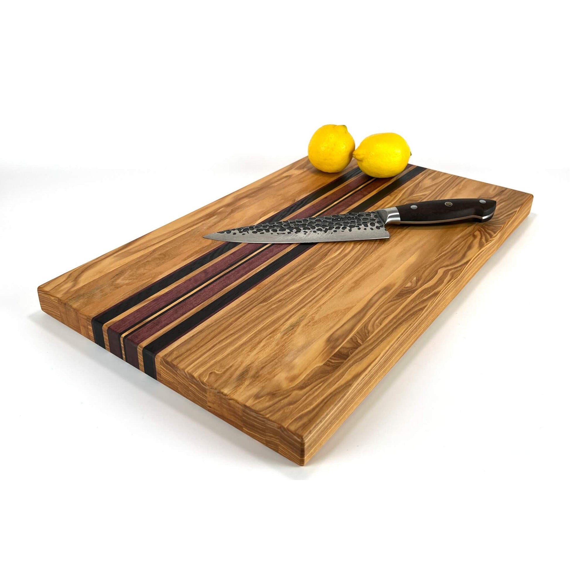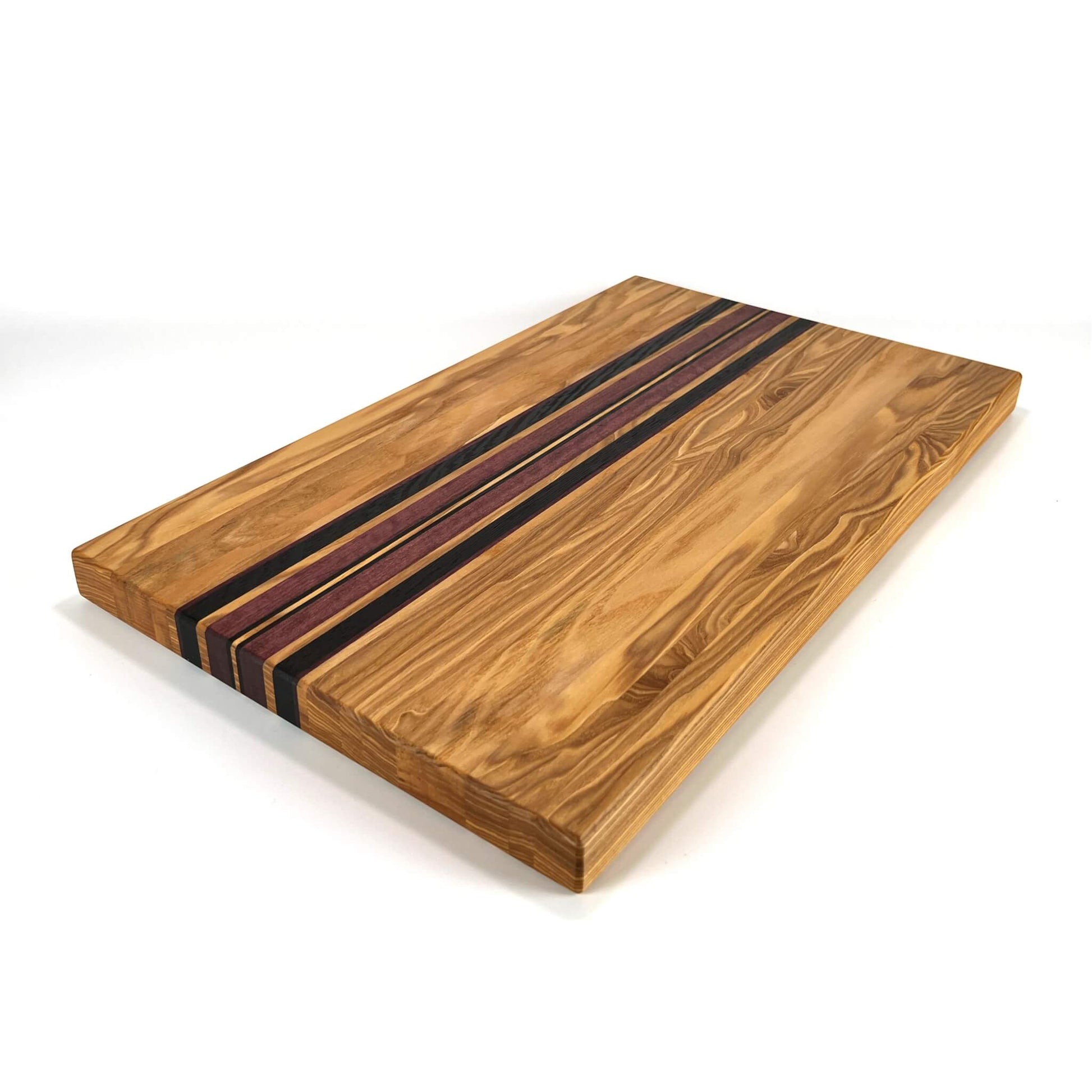Langholzschneidebrett aus deutscher Esche, südamerikanischem Amarant und afrikanischem Wenge.